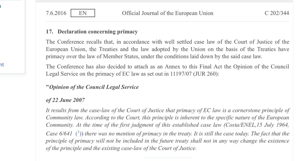 Since it keeps on being mentioned that the primacy of EU law is not in the EU treaties: See Declaration 17 to the Treaty of Lisbon, which is relevant for the interpretation of the treaties (article 31 para 2 (a) Vienna Convention on the Law of Treaties)