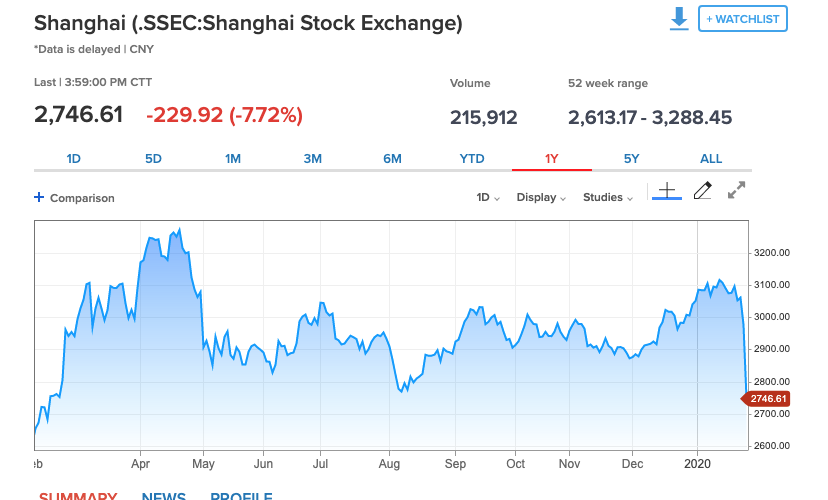 #Shanghai Composite Plunges By 8.75% on#Coronavirus Shutdownpic.twitter.com/L2z5MPM6hv