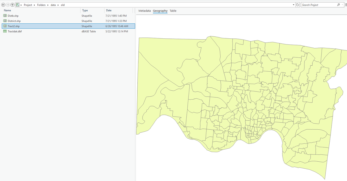 The oldest shapefiles I found on our network. The 1998 file is one of our own, the 1996 file was base data from a software package (so not one of ours)