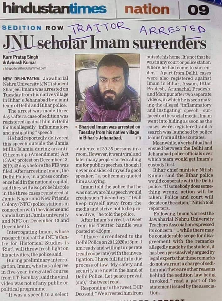 शरजील इमाम के दो और साथियों को कस्टडी में लिया गया क्योंकि सभी का खून शामिल है यहां की मिट्टी में शरजील अकेला गद्दार थोड़ी है !