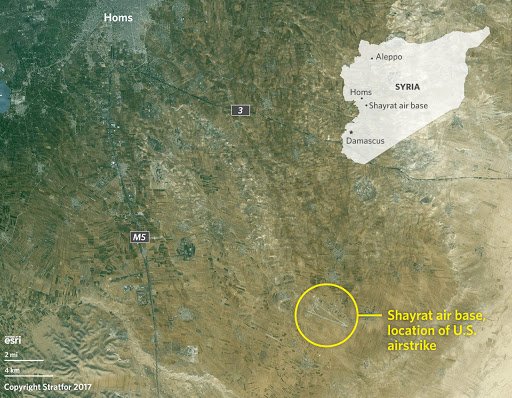 #Shayrat air base,#Syria. It's where#Washington launched approximately 50-70 precision-guided missiles. http://social.stratfor.com/tgbE30aE9N5 pic.twitter.com/ze6r71Qtbg