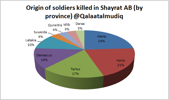 #Syria: breakdown (by province) of 29 documented military fatalities following explosion in#Shayrat Airbase yesterday. pic.twitter.com/oPG3s9A0rG