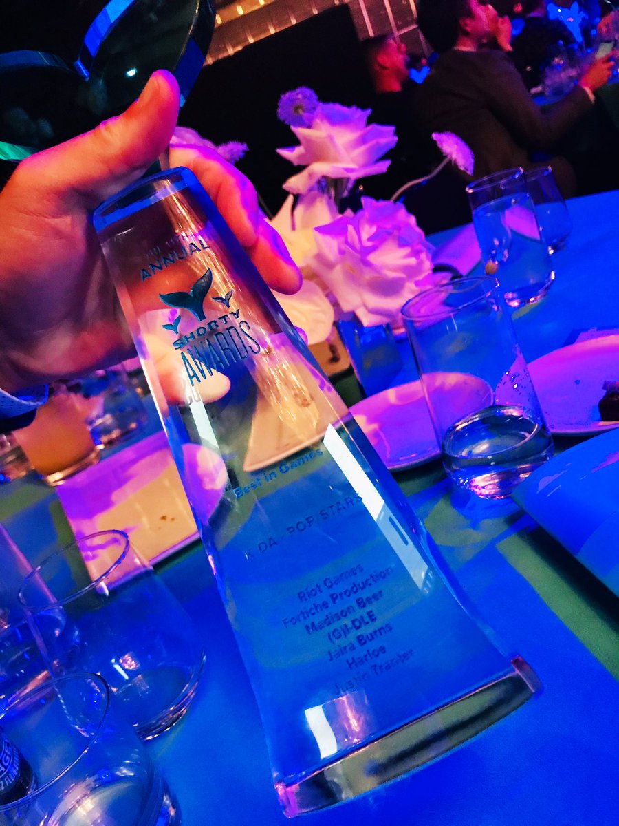@G_I_DLE for their win for Best In Games for their work on K/DA with@riotgames,@madisonbeer,@JairaBurns,@justtranter and more at the 2019#ShortyAwards! Riot Games was at the ceremony with their trophy. Check it out,#Neverland:pic.twitter.com/aBTHEK9dCT