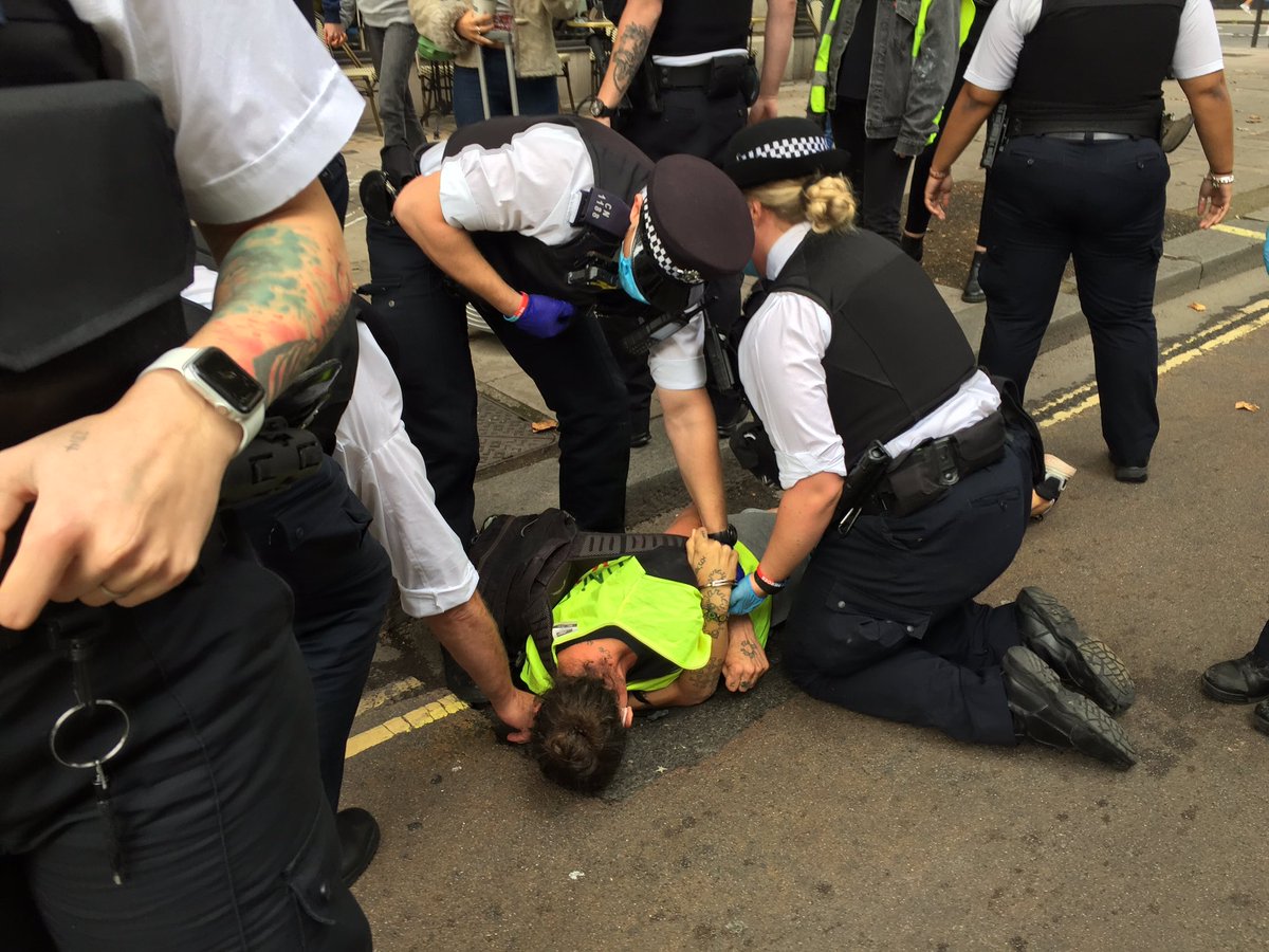 UK police filmed recklessly & violently arresting a young Palestinian activist protesting against Israeli war criminals Elbit