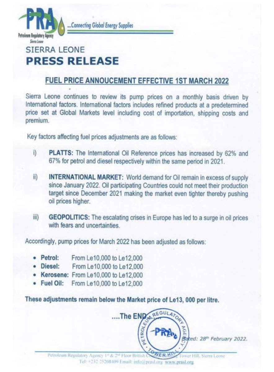 #gasprices#FuelPriceHike#sierraleone pic.twitter.com/91KCwy9gdB