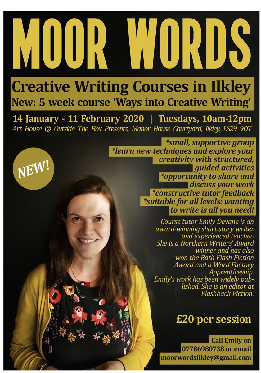 #Ilkley#Skipton#Otley#Leeds#Menston#Silsden#Harrogate area and want to join me for this#creativewriting class at Outside The Box Presents art space, e-mail me at moorwordsilkley@gmail.com. Limited places left as classes are kept small and friendly :).https://twitter.com/WordsMoor/status/1207056749590650892 …