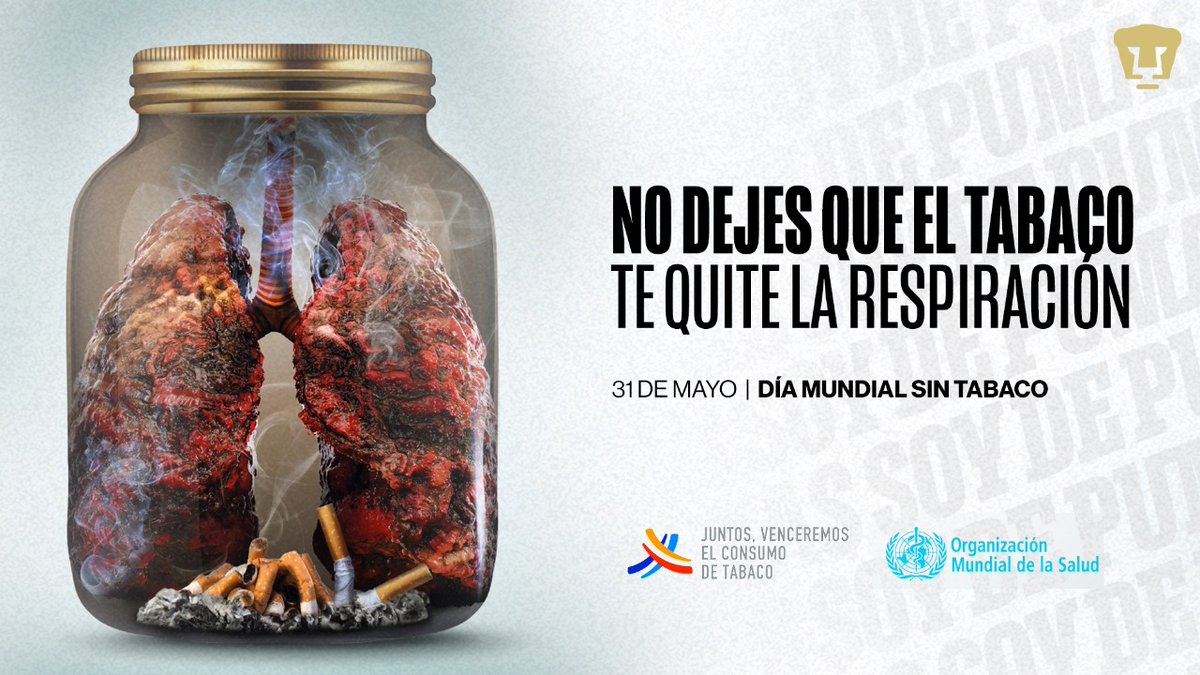#DíaMundialSinTabaco, hagamos conciencia sobre su consumo nocivo y la exposición dañina al humo del tabaco ajeno. El consumo del tabaco aumenta el riesgo de padecer enfermedades respiratorias.#SinTabaco#SoyDePumaspic.twitter.com/8KswhkerKJ