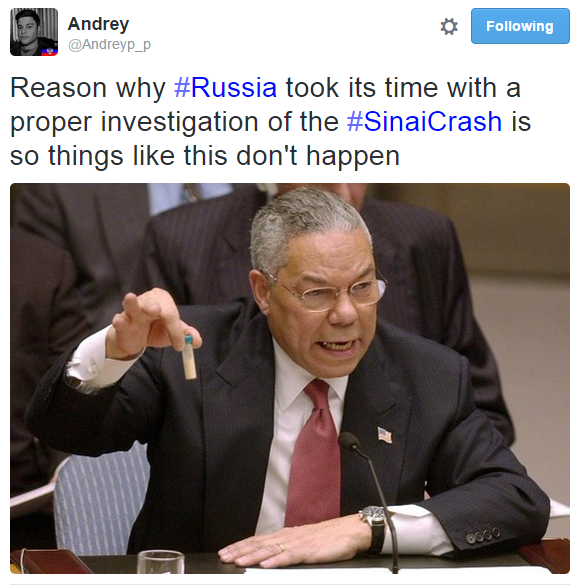#Russia's proper handling of#A321#SinaiCrash, an example for all the world. Now enter phase 2. pic.twitter.com/V3aZWKSmcD