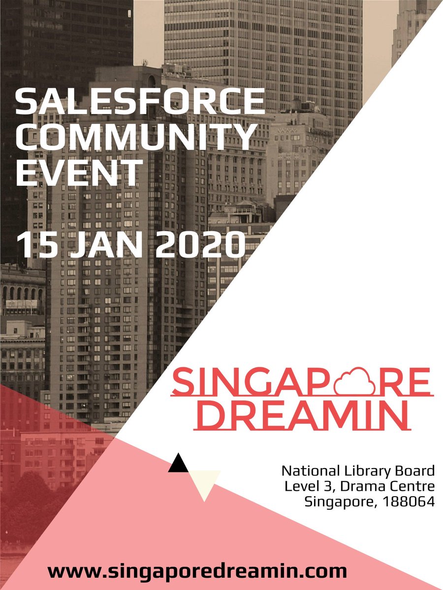 @salesforce Dreamin event -#SingaporeDreamin is here! Mark your calendar - Jan 15th, 2020. Follow to catch all the latest updates about the event. Check out our website at http://www.singaporedreamin.com#SingaporeDreamin pic.twitter.com/GbJb2KUOzT
