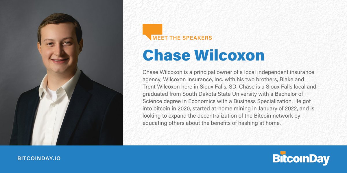 #BitcoinDay#SiouxFalls is Chase Wilcoxon! Chase started at-home mining & is looking to expand the decentralization of the Bitcoin network by educating others about the benefits of hashing at home. Get your tickets today! http://bitcoinday.io/siouxfalls22 pic.twitter.com/1fX4UOenov