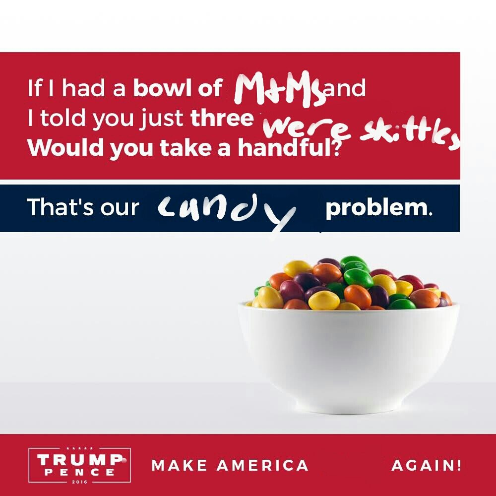 #Trump Jr's Analogy: Like All Racism, It's Poorly Conceived & Won't Stand Up to LOGIC!#SkittlesWelcome pic.twitter.com/qpNK8RjEjZ