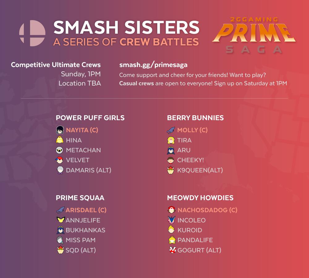 #SmashSisters at#PrimeSaga! Come cheer for ya homies at 1PM