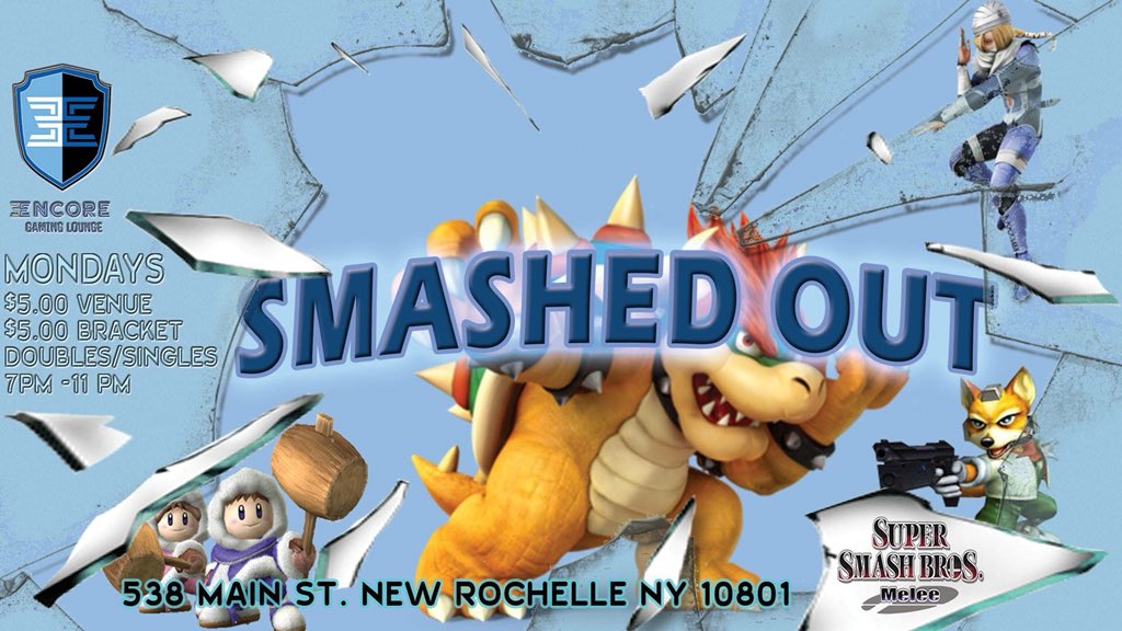 #SmashedOut#Melee at its new home! Come on down for some doubles and singles. Venue and bracket $5.00 each 538 Main St New Rochelle NY entrance on Division at above CTown http://www.twitch.tv/EncoreEsportsUSA … Ft.@CaptainSmuckers@SoonPlayer7@BaileyWasHere@LgbtChess and morepic.twitter.com/2Bxt1KS0B8