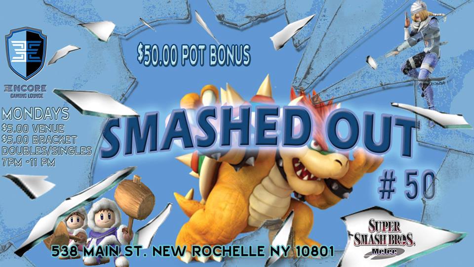 #SmashedOut 50 - and we are adding a pot bonus of $50.00 to celebrate! Come check out the best Venue for gaming in NY@EncoreEsportsUS Doubles at 7:30 and singles soon after For info and directions, please head to http://www.wfgcny.com/index.php/sessions.html …#SSBM#EncoreEsports!pic.twitter.com/lNlPjtDj4L