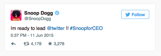 And this is why I love Twitter: Snoop Dogg for Twitter CEO. Let’s Make This Happen