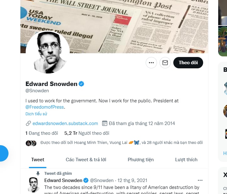Verified account@Snowden I used to work for the government. Now I work for the public. President at