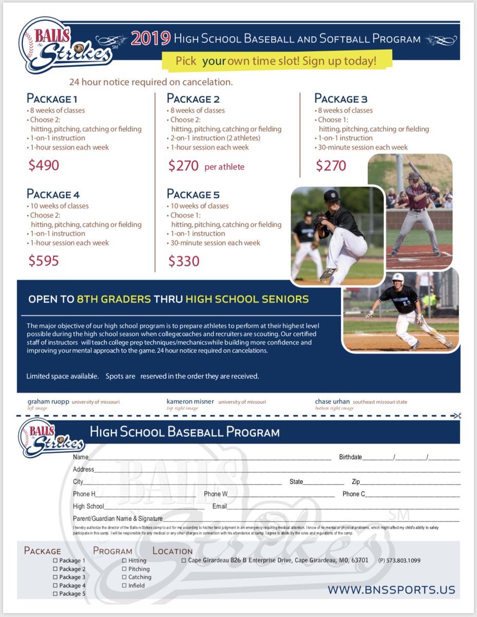 Register for one of our 2019 High School Programs and train with our experienced instructors from now until your season begins! Call 573-803-1099 to get started.