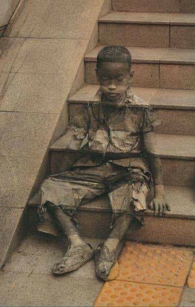 #Poverty' is street art by Kevin Lee. The child is depicted sitting on steps, being stepped on & stepped over to illustrate how invisible the poor living among us can be. How do you feel about this vision of the world?#SDGs#solidarity#bethechange pic.twitter.com/ll4VE93gBE