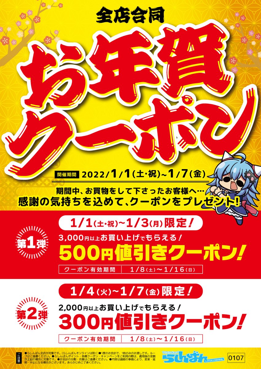 お得なお年賀クーポン第1弾も本日までとなっております!
