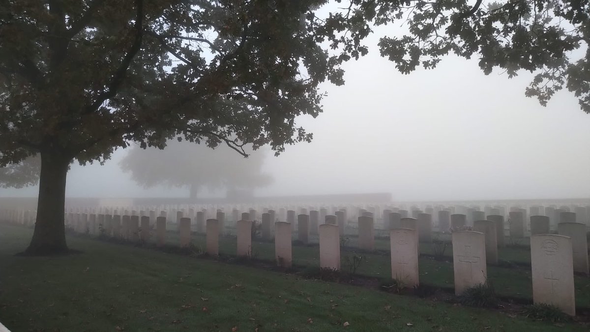 Foggy afternoon at Bronfay Farm Cemetery near Bray sur Somme. Feels like a melancholy blanket sitting over this land.