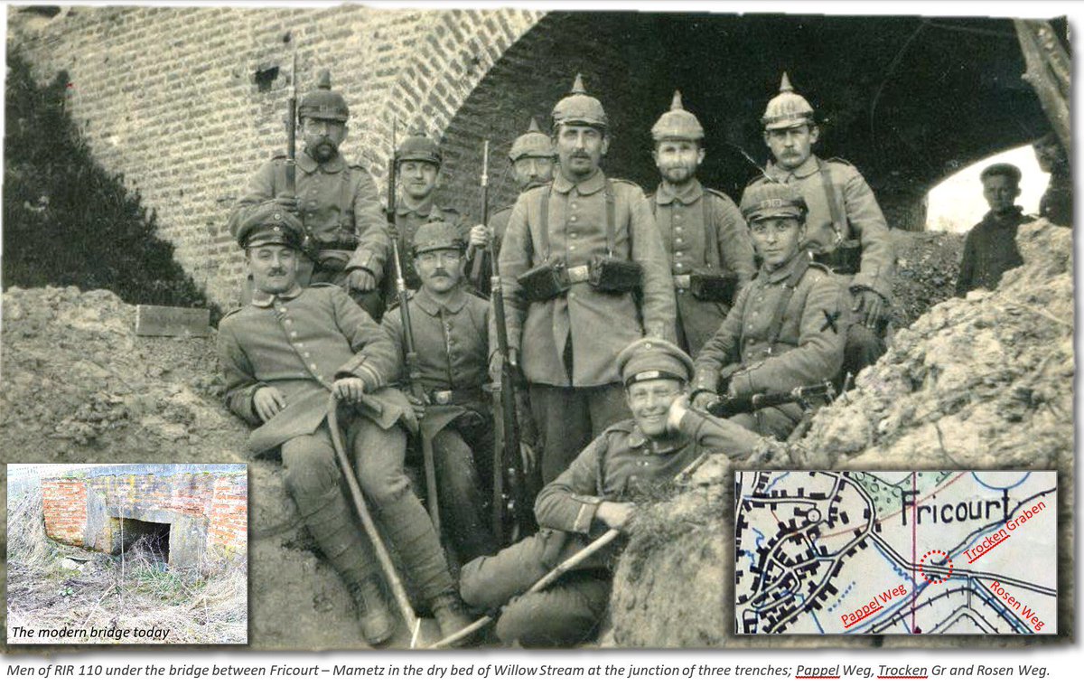 Men of RIR110 in a trench that ran under the bridge across the dry bed of Willow Stream between Mametz and Fricourt.