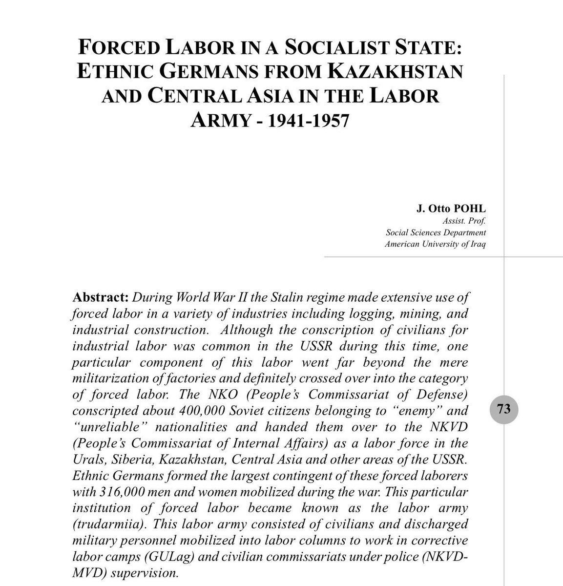 #OpenAccess "Forced labor in a Socialist State: ethnic Germans from Kazakhstan and central asia in the labor army - 1941-1957" By J. Otto Pohl@AUIS_NEWS https://s3.amazonaws.com/academia.edu.documents/56076620/ottopohl.pdf?AWSAccessKeyId=AKIAIWOWYYGZ2Y53UL3A&Expires=1524328910&Signature=i26MAZvxEfemfZlvATxSpHL%2BqJs%3D&response-content-disposition=attachment%3B%20filename%3DForced_Labor_in_a_Socialist_State_Ethnic.pdf …#ForcedLabor#GULAG#Kazakhstan#CentralAsia#LaborCamp#USSR CCCP#SovietCrimes#SovietUnion#Stalinpic.twitter.com/mFvdNQ2vlW