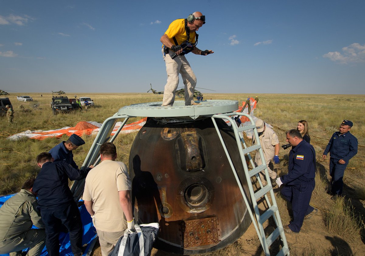 #SoyuzMS11 crew (Ann McClain) is out of the Descent Module: pic.twitter.com/aGCJOWwpLJ