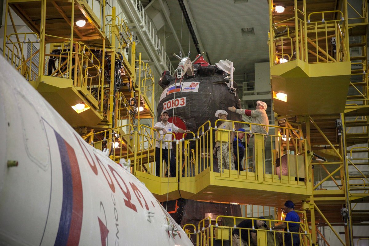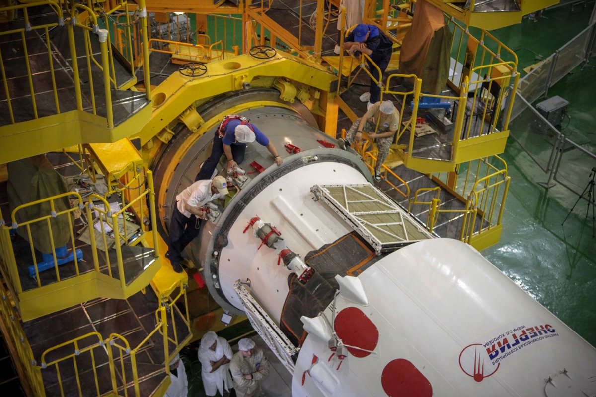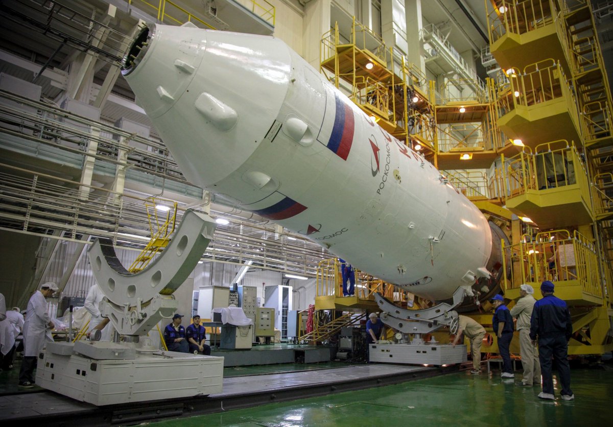 #SoyuzMS14 spacecraft within the nose assembly was transported for final assembly with the Soyuz-2.1a launch vehicle to the assembly and test facility of Baikonur cosmodrome.