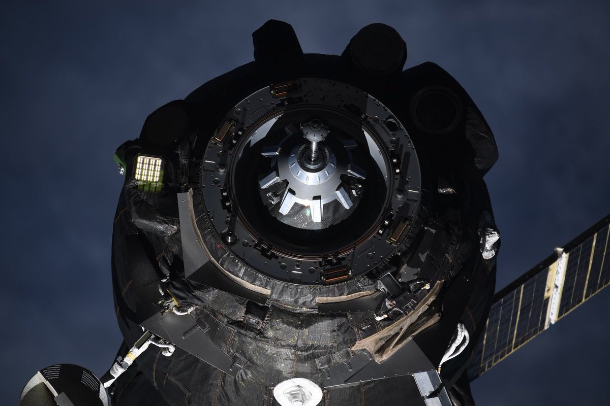 #SoyuzMS14 spacecraft docked to the Zvezda module of the International Space Station. The crew is now preparing to open the hatches. The Soyuz ship delivered about 670 kg of dry cargo to the ISS pic.twitter.com/GWzO1vyoLK