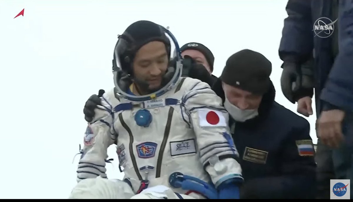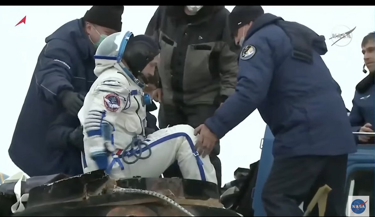 #NASA - Images of all three of the crew members being extracted from the#SoyuzMS20. NASA-TV wrapping up coverage. 4th image has the stats for the flight. pic.twitter.com/dvOOReuMej