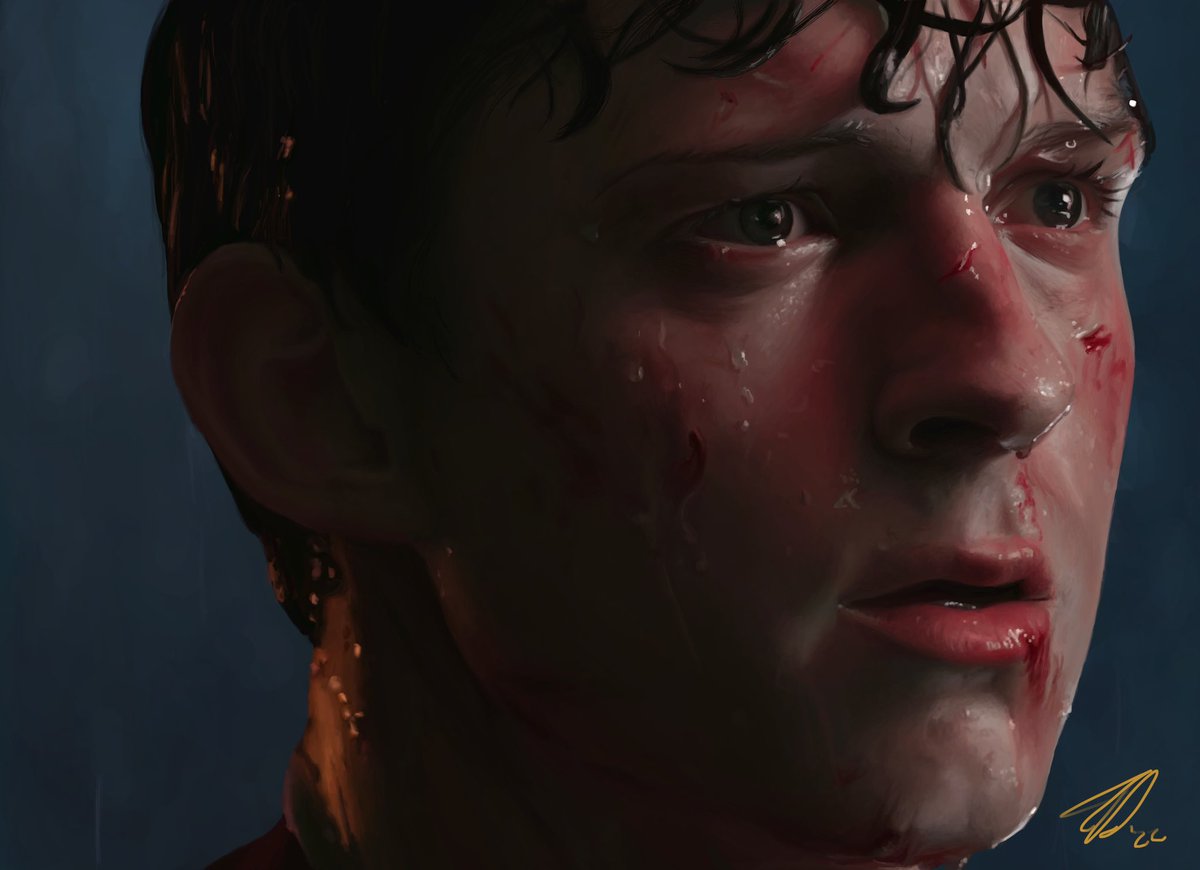 digital painting of tom holland as peter parker in spider-man no way home.