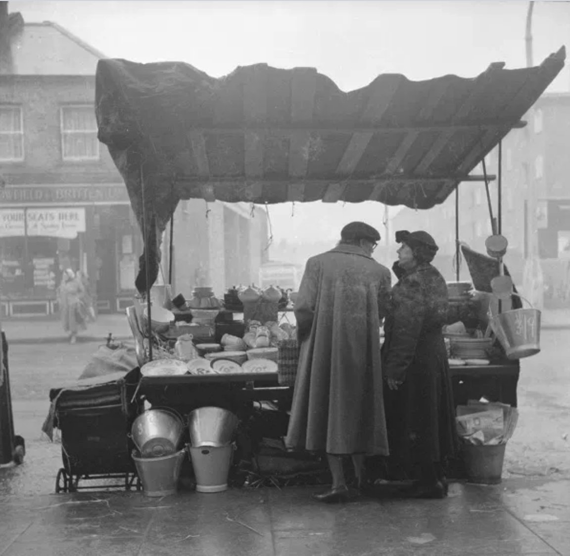 Artist & Photographer Nigel Henderson lived in Bethnal Green between 1948 and 1953 and photographed the street scenes around Spitalfields market. A snapshot of a time and place.