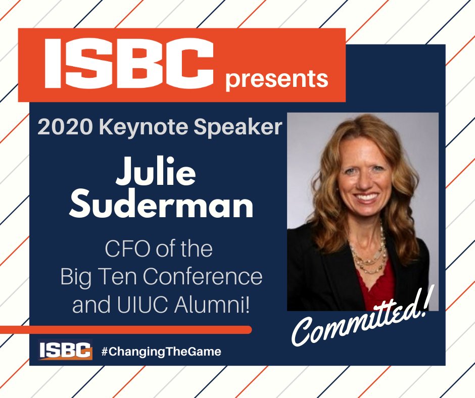 We’re so excited to announce our 2020 Keynote Speaker Julie Suderman! She is the CFO of the Big Ten Conference and an alumni from UIUC. You won’t want to miss this