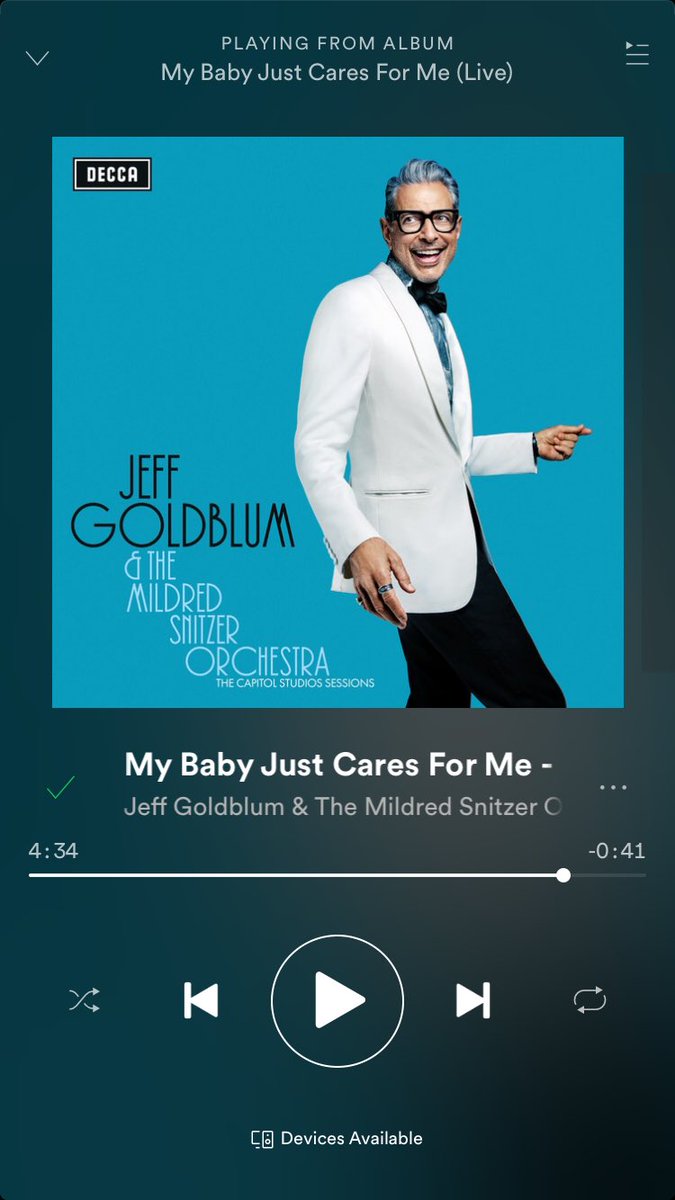 #JeffGoldblum album out today, ft. Yours truly!#mybabyjustcaresforme#spotify#linkbelow@Spotify