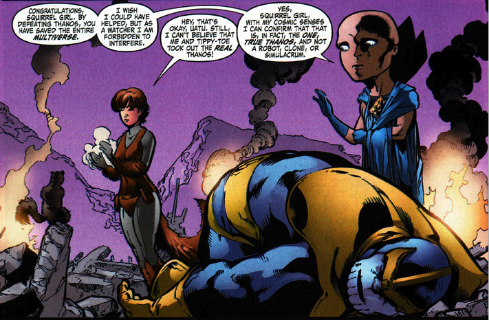 Squirrel girl!! Ready to defeat Thanos!! And that is not a joke is a fact