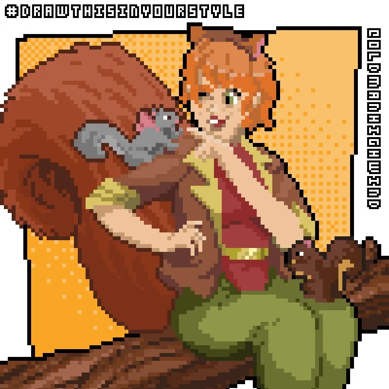 #drawthisinyourstyle challenge from@KHemmings94 and had a blast. It makes for good practice so I recommend it, I'll probably try more on stream.#SquirrelGirl#squirrel#twitchstreamer#pixelart Twitch: https://www.twitch.tv/oldmanhighwind/v/1479504017?sr=a …pic.twitter.com/ml0NuzighT