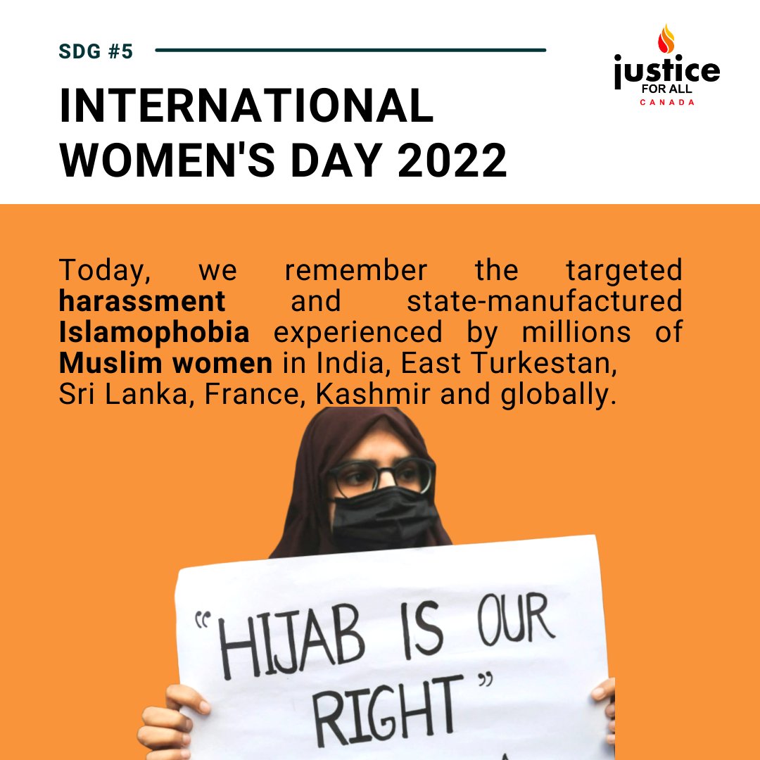 #InternationalWomensDay, we remember the targeted harassment, state-manufactured#Islamophobia, sexual and gender-based violence experienced by millions of#Muslim women in#India,#EastTurkestan,#SriLanka,#France,#Kashmir and globally.#womensday2022#Karnatakapic.twitter.com/VOodSQ6ShJ
