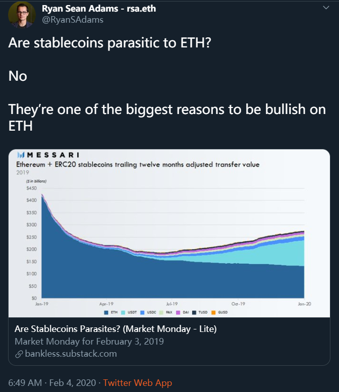 #stablecoin situation concluding that they are not parasitic to#Ethereum .@RyanSAdams@MessariCrypto@MessariNews#C2CX#ETH#crypto#cryptocurrencypic.twitter.com/YIlKJAgUOJ