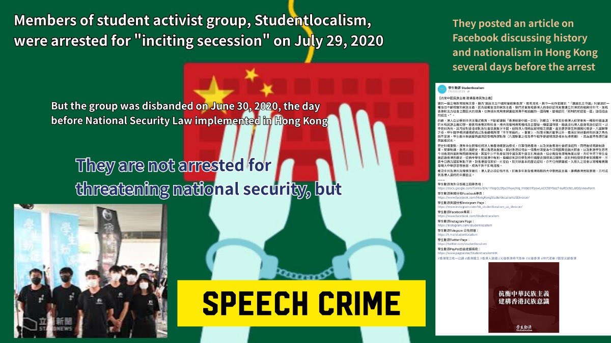 #NationalSecueityLaw are only youngsters! They were charged of posting a pro independent passage on Facebook! Such arrest is ridiculous and unacceptable! No freedom of speech!#standwithhonkong pic.twitter.com/KTsYlCsa0a
