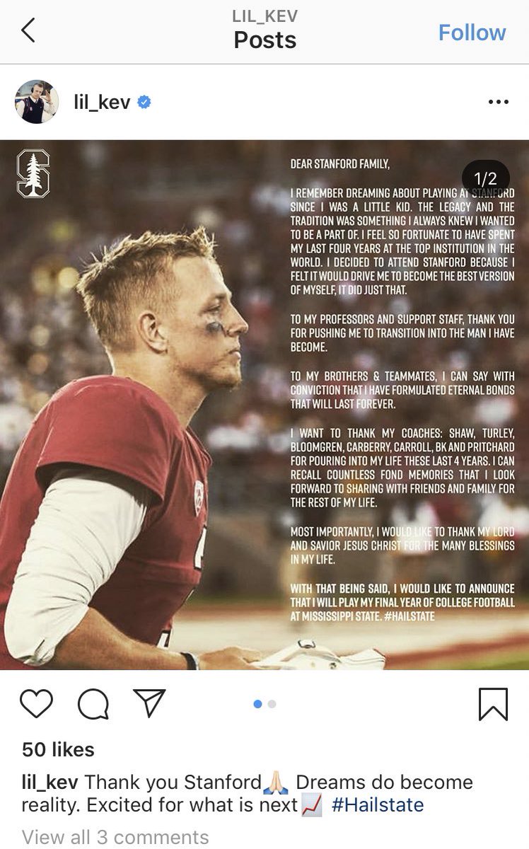 #Stanford QB KJ Costello is transferring to#MississippiState. Big get for#HailState? https://www.instagram.com/p/B8H2F9iljSy/?igshid=kw25n8b4cbwq … -