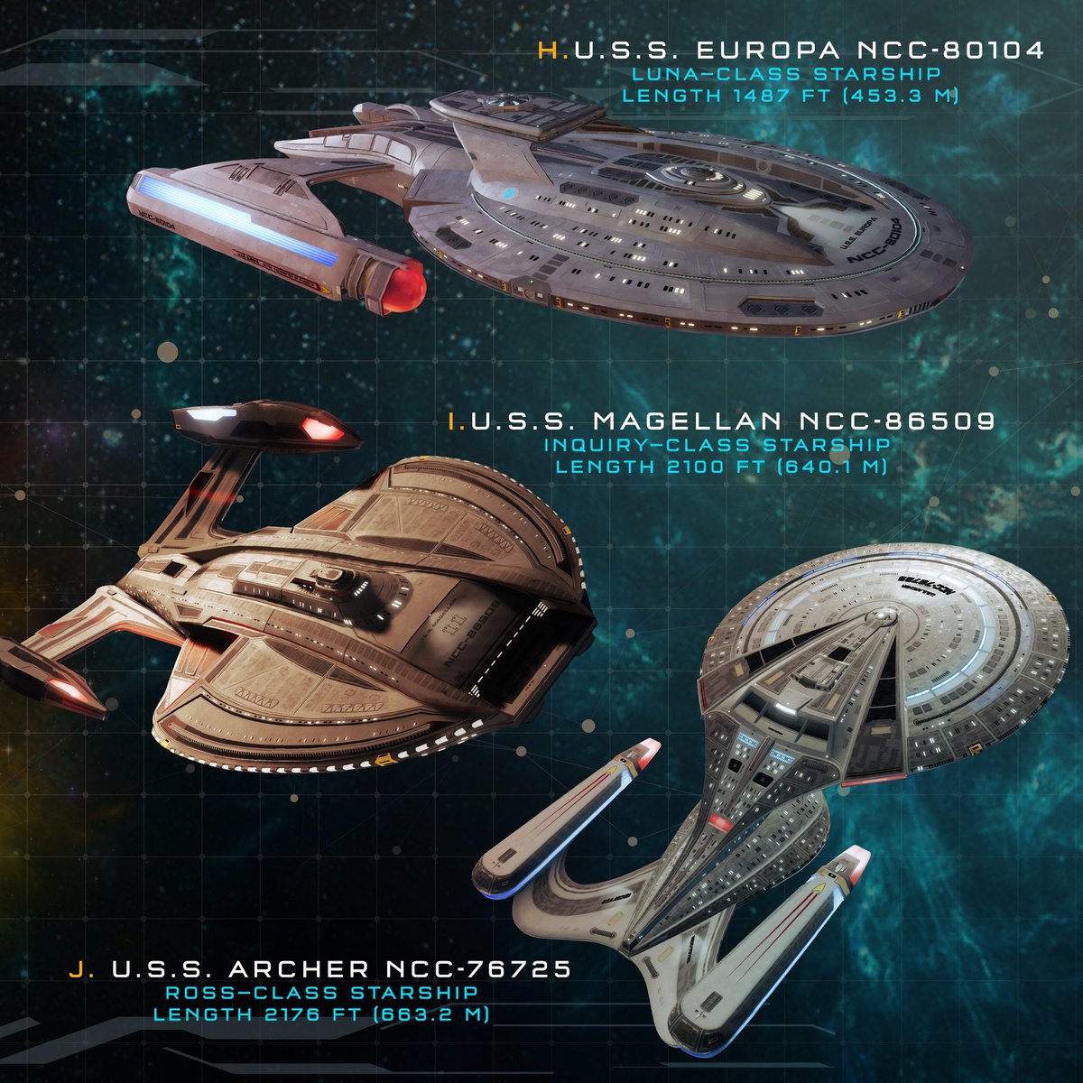 NEW - Take a look at #StarTrekPicard’s Starfleet Starships! Featuring such ships as the nee USS Excelsior and the Ross-class USS Archer! pic.twitter.com/PpF2ZDXw4z