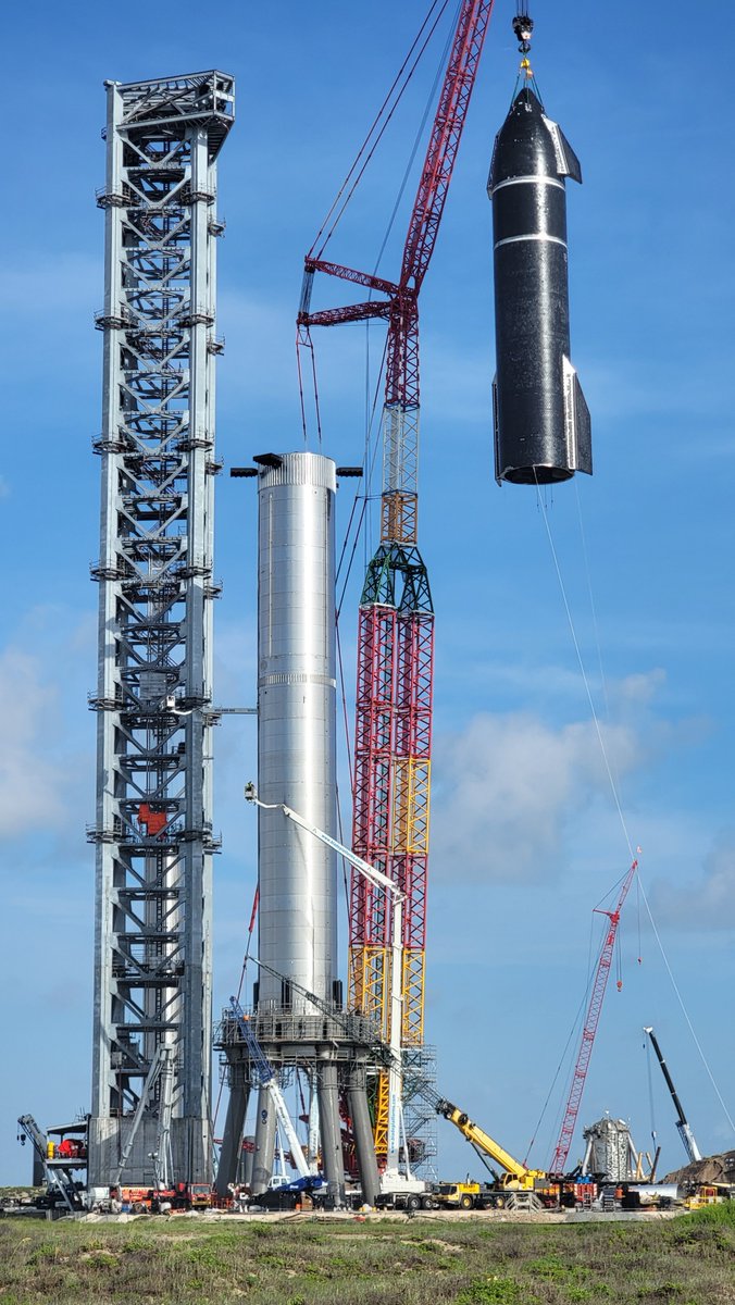 @thejackbeyer saying cheers erupted at Starbase as#Starship was stacked just a couple minutes ago. pic.twitter.com/VWtzq8i2Ru