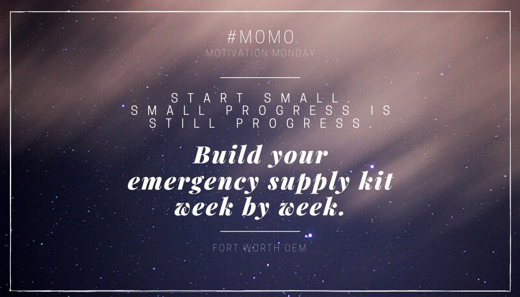 Well start small... build your emergency supply kit little by little. Every Saturday we will post 1 (ONE) item to purchase for your kit at home. Follow with us every week!