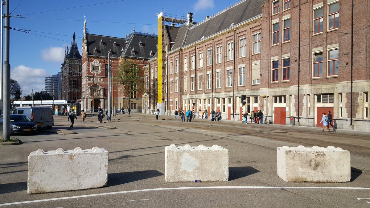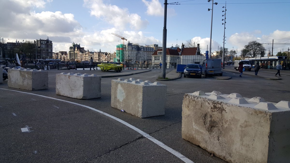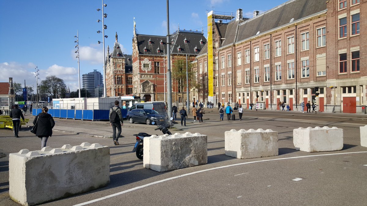 #Stationplein voor het#CS in Amsterdam met betonblokken afgezet voor eventuele incidenten.pic.twitter.com/y2pDQymwZz