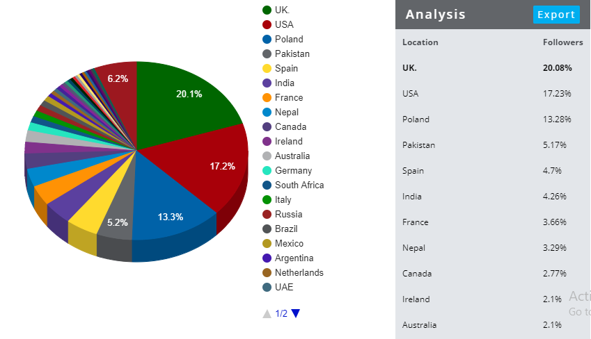 @EverestToday has it's followers from 136 countries among 20.1% are in UK, 17.2% in USA and 13.3% in Poland. Namaste!#Statistics pic.twitter.com/NVSMj9orIo