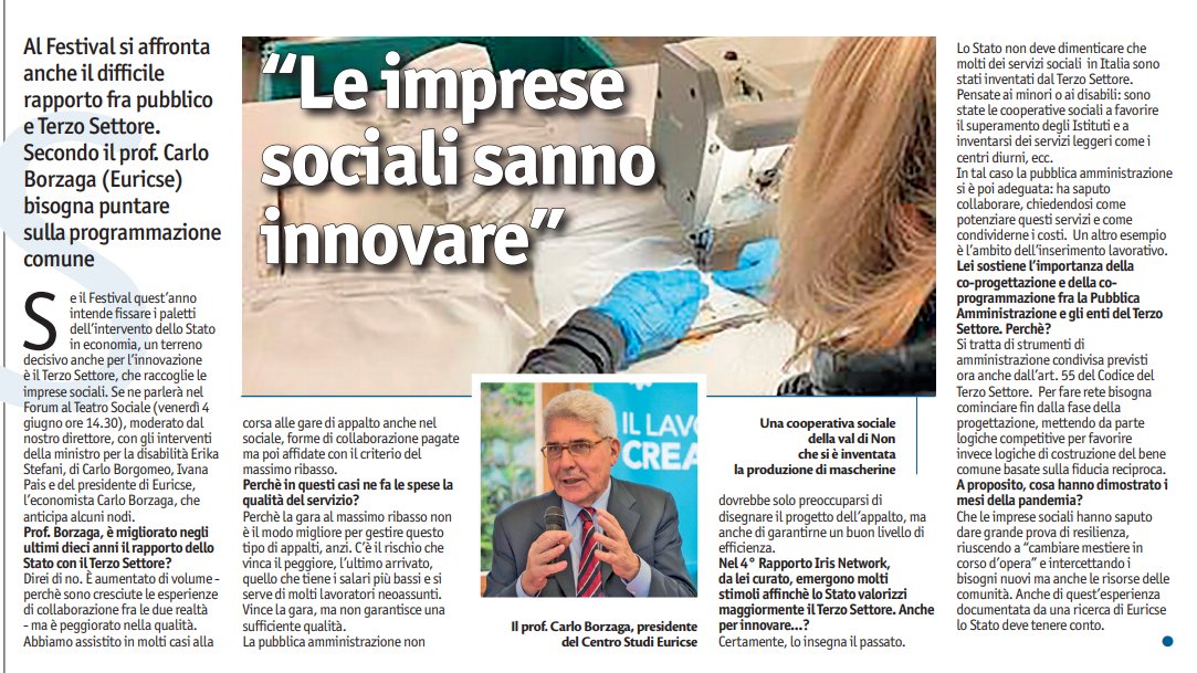 #pandemia le imprese sociali hanno cambiato mestiere in corso d'opera: lo#Stato deve tenerne conto". Il punto di vista del nostro presidente Carlo#Borzaga in edicola su@vitatrentina26 intervistato da@diegoandreatta1 e questo pomeriggio alle 14.30@economicsfestpic.twitter.com/25BwvHWS6C