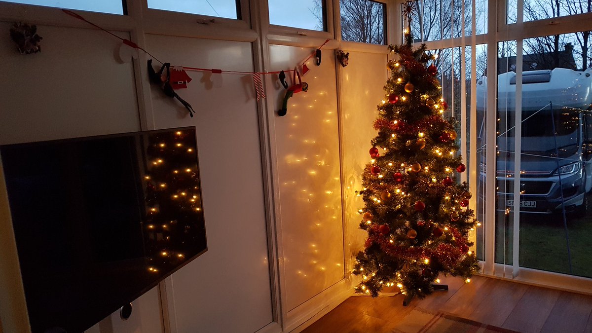 Rare scene in the Kerr household usually packing suitcases not unpacking a xmas tree