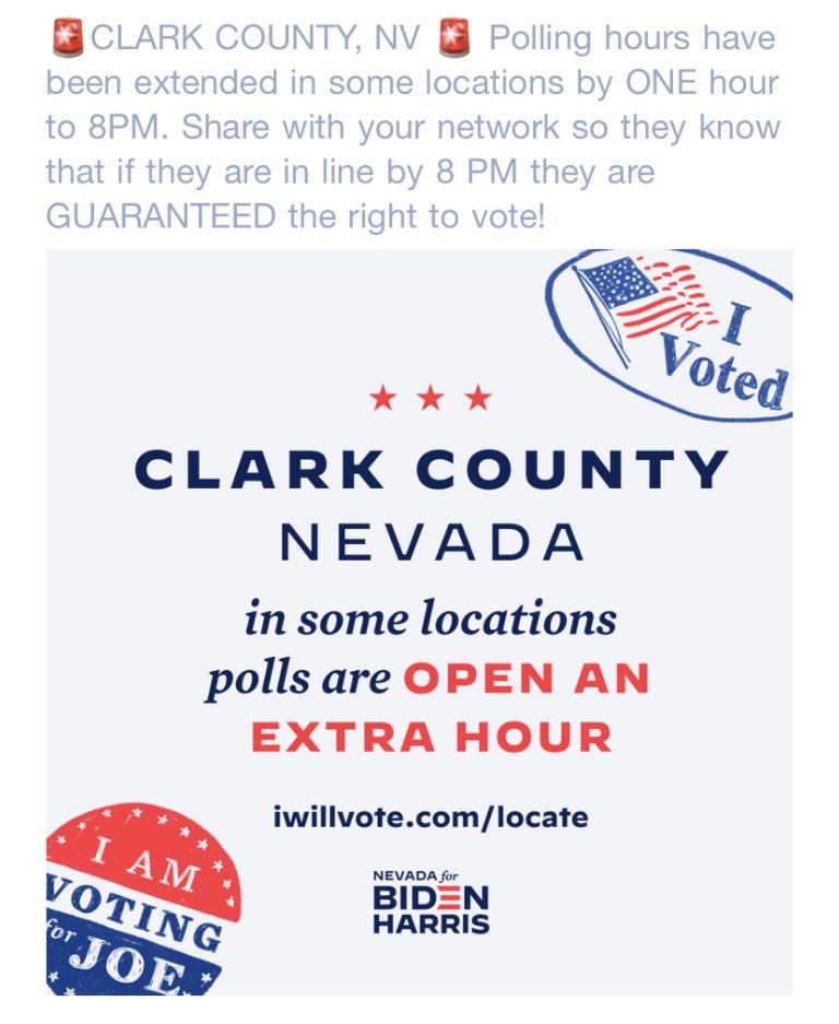 #StayInLine Vegas & Clark County voters!!!#StayInLineNoMatterWhat#VoteBidenHarrisToSaveAmericapic.twitter.com/FUcRvW5LCQ