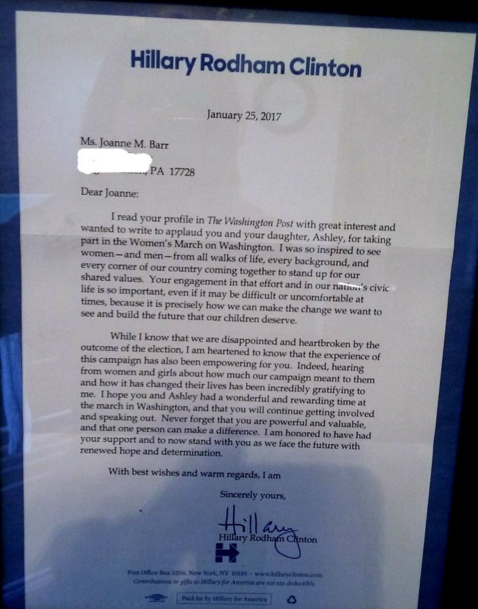 @HillaryClinton wrote this letter to a lifelong Republican woman who participated in#WomensMarch. https://www.washingtonpost.com/local/social-issues/shes-54-white-rural-and-a-lifelong-republican-why-is-she-protesting-donald-trump/2017/01/21/6457ac02-df41-11e6-918c-99ede3c8cafa_story.html …#StillWithHer pic.twitter.com/xa2Bd23qmM