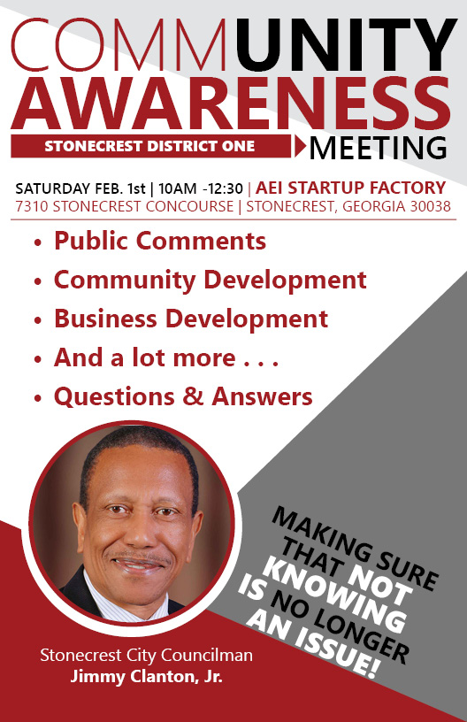 Join us tomorrow for Stonecrest's monthly Community Awareness Day hosted by D1